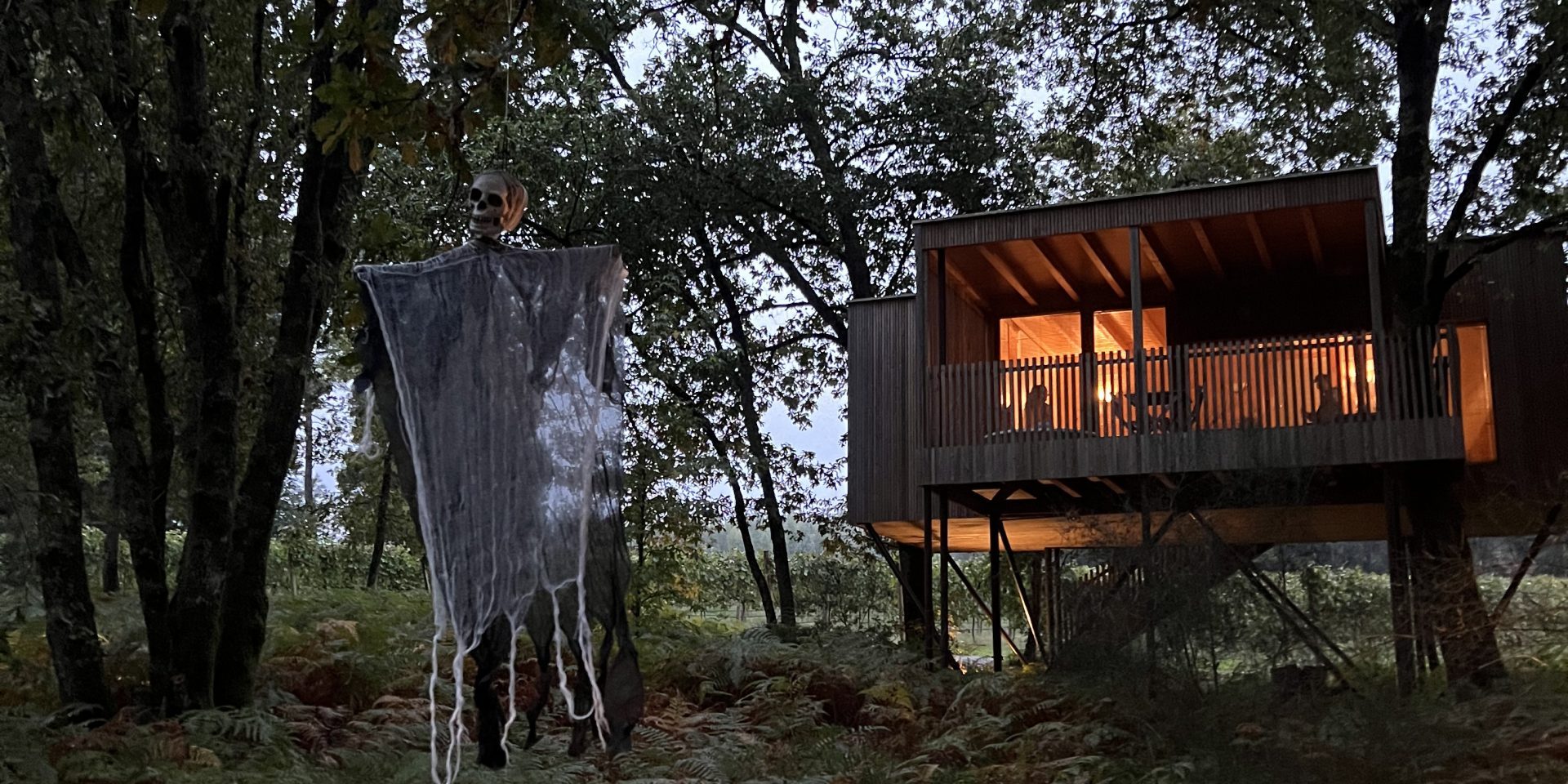 We want to create an atmosphere, so that you can enjoy a different stay, you can see our forest illuminated in orange and many skeletons adorning different parts of our accommodation.