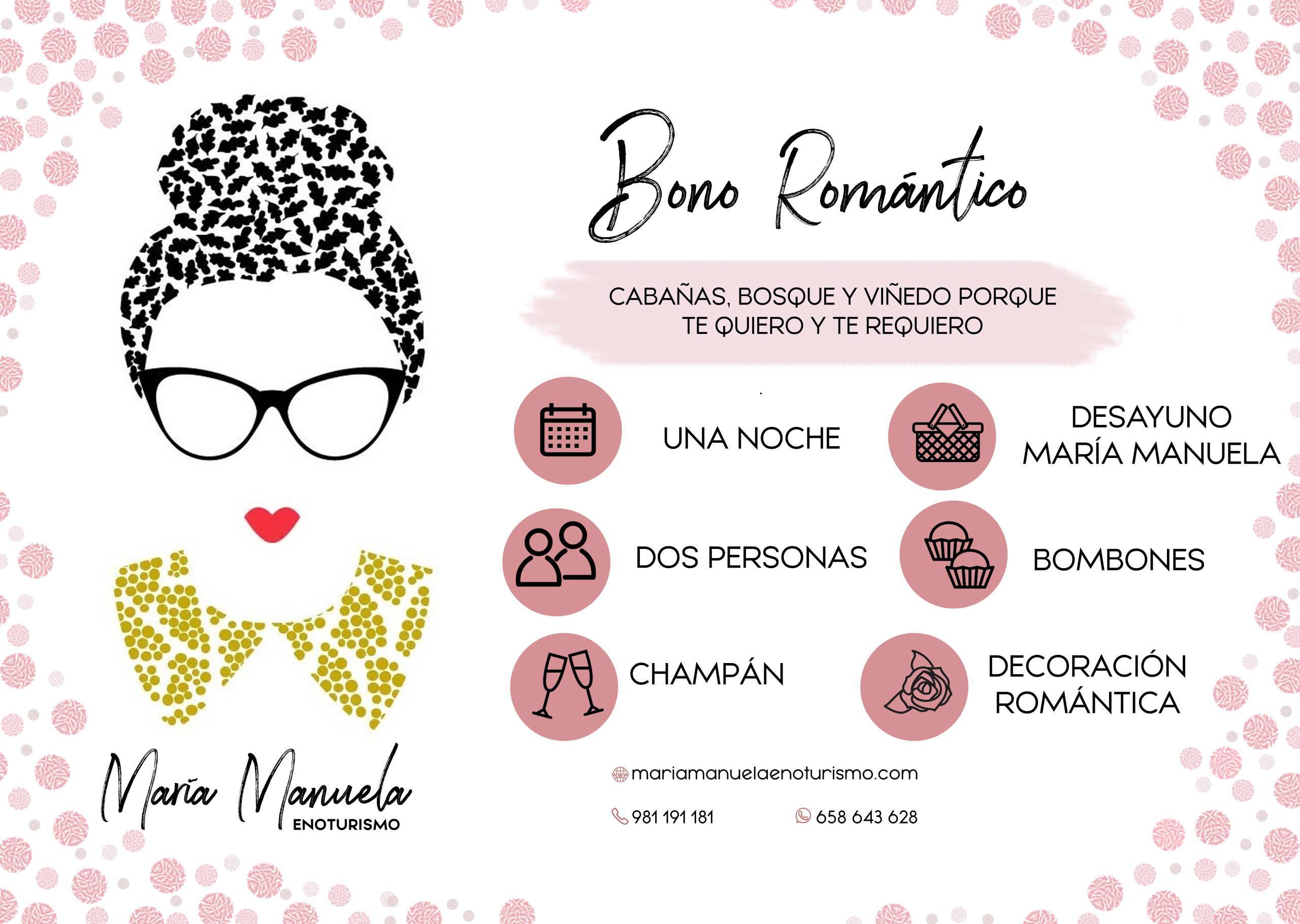Bono romántico: alojamiento en una cabaña para dos personas, decoración con pétalos, champán y bombones.